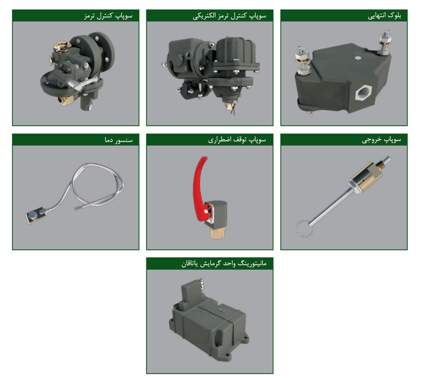 | ۵) اتصال سه راهی لوله | ۱۰) سیلندر ترمز | ۱۵) مانیتورینگ واحد گرمایش یاتاقان |