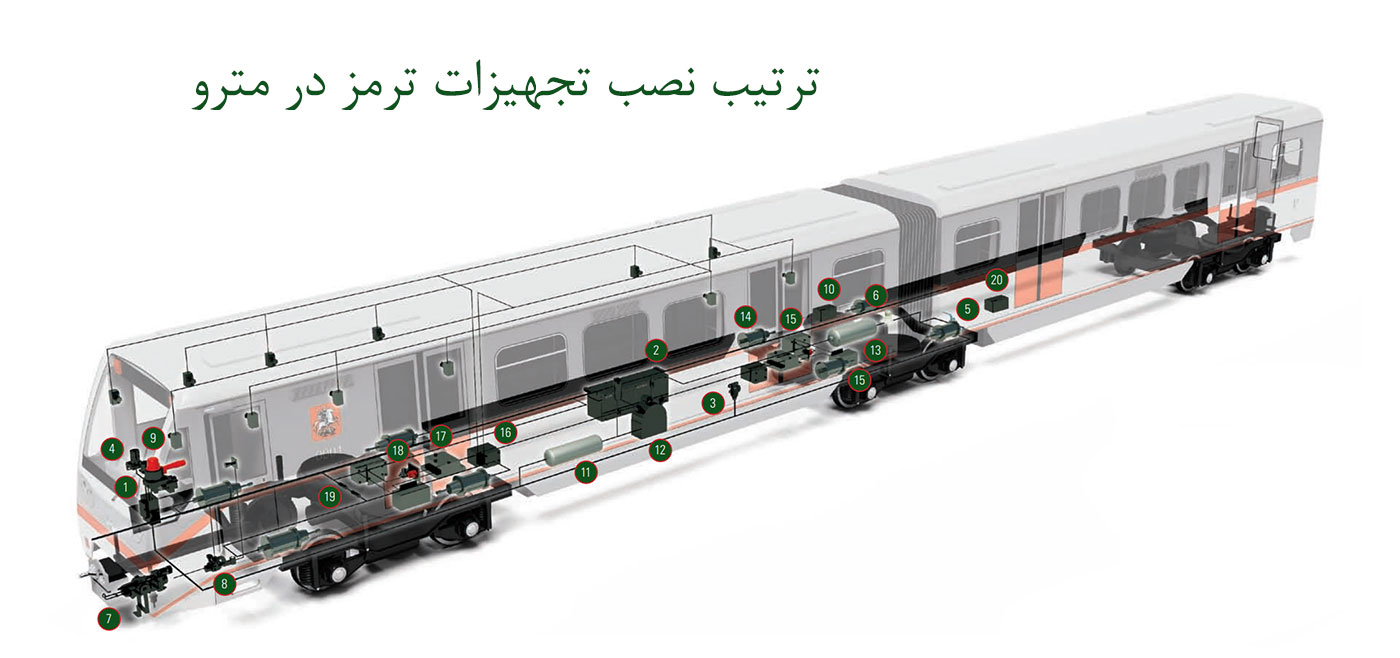 جانمایی اجزا سامانه ترمز در خودروهای ریلی در برندهای مختلف تفاوت کوچکی با هم دارند ولی در حالت کلی شباهت بسیاری وجود دارد.