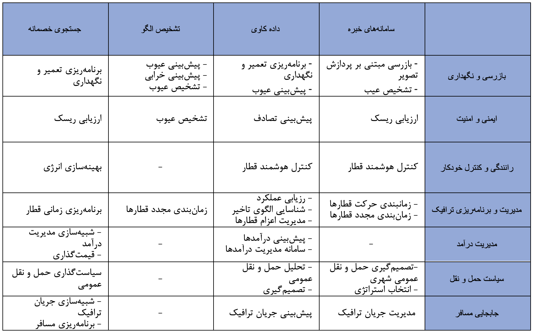 جدول 1: راهکارهای حاصل از توانمندسازی حوزههای صنعت ریلی با رویکردهای تحقیقاتی هوش مصنوعی