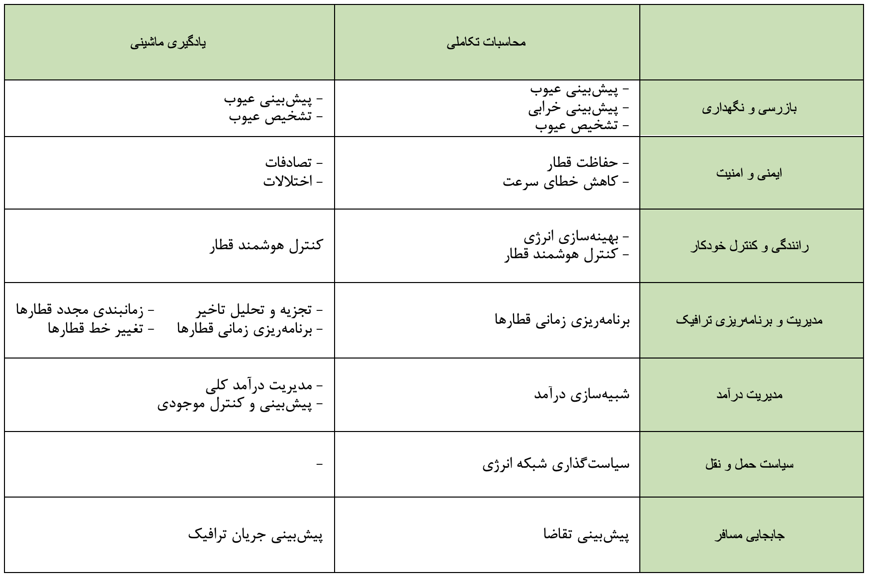 جدول 1: راهکارهای حاصل از توانمندسازی حوزههای صنعت ریلی با رویکردهای تحقیقاتی هوش مصنوعی
